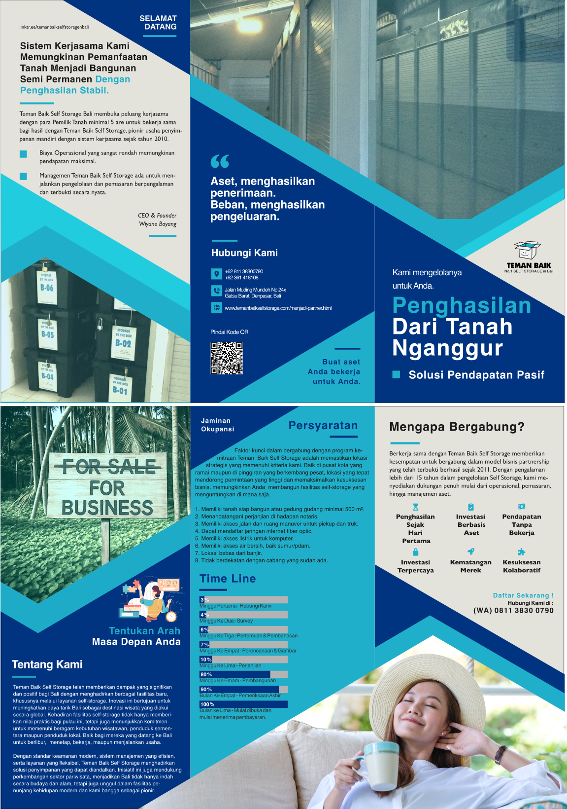 Bermitra dengan Teman Baik Self Storage adalah peluang investasi Blue - Chip, sebuah perusahaan teruji dan perintis di Bali dengan pengalaman terpercaya selama lebih dari 15 tahun dalam menejemen Penyimpanan Mandiri.